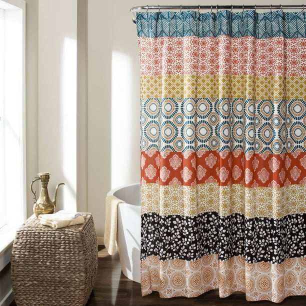 Lush Decor Bohemian Stripe Print Shower Curtain 72x72 Turquoise Orange Single Walmart Com