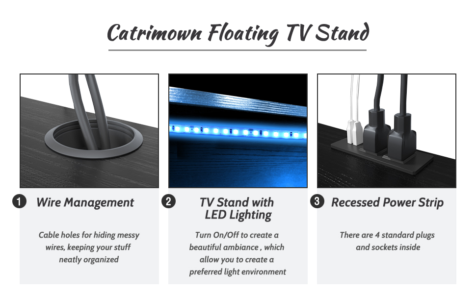 Amazon Com Floating Tv Stand With Led Lights Power Outlet 59 Floating Shelf For 43 50 55 60 Inch Tv Wall Mounted Media Console Entertainment Center Tv Console Cabinet Stand For 55 Inch Tv Black